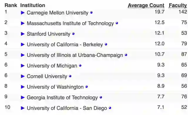 CMU、康奈尔大学、斯坦福大学分列前三。