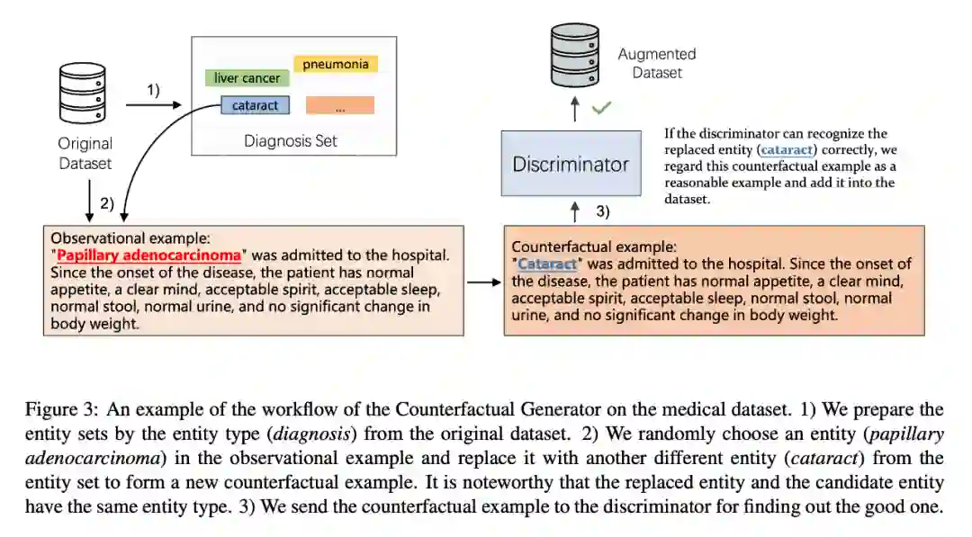 2. 从实体集合中选取与待干预样本实体相同类别的实体进行替换从而生成反事实样本;
