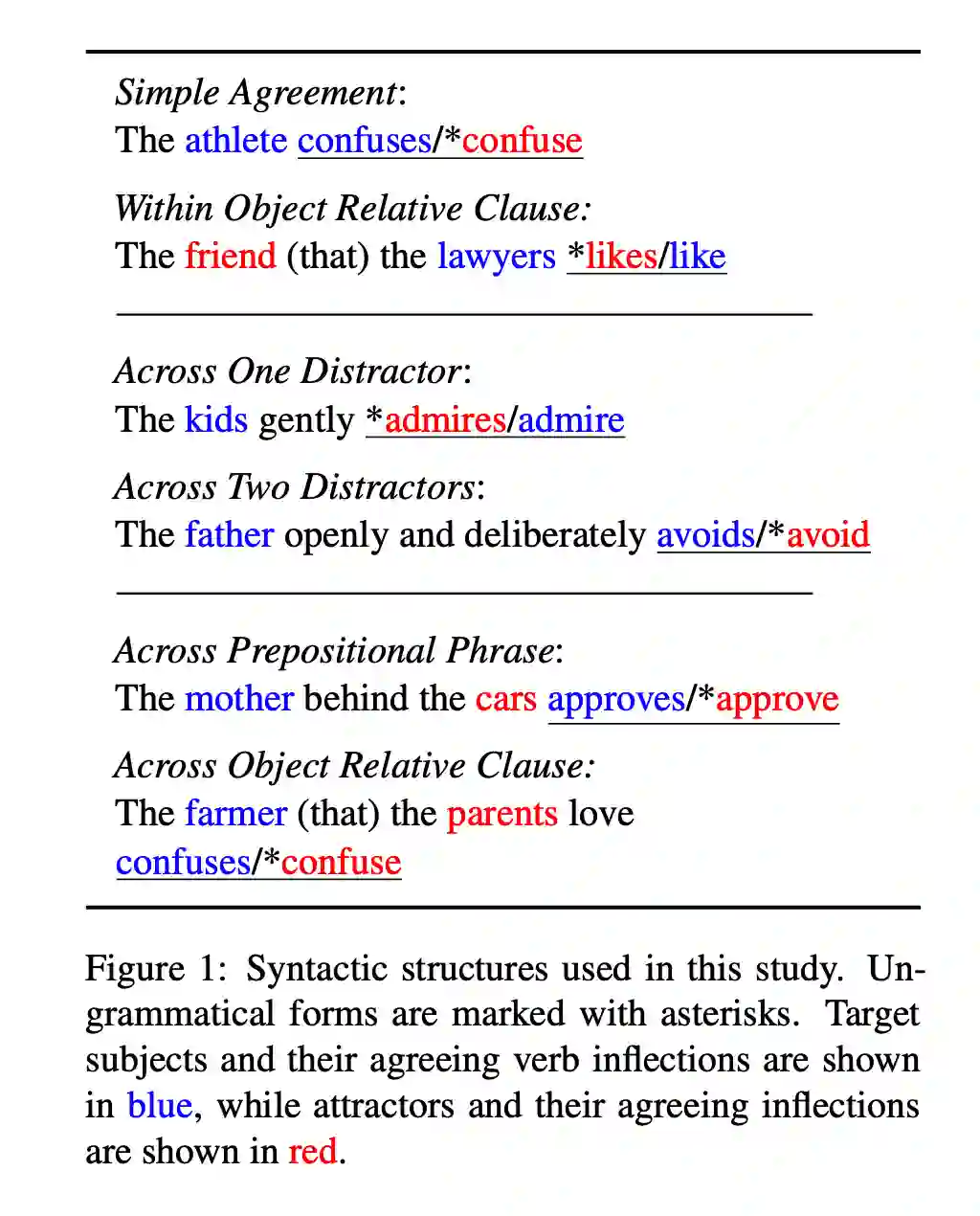 作者想应用因果中介分析(causal mediation analysis)来观察预训练语言模型在「主谓一致」上的表现,探讨对不同的语法结构来说,语言模型中的的哪个神经元负责判断判断「主谓一致」。
