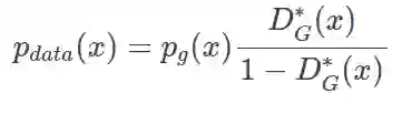 这个BGAN的Intuition就是:令G去学习如何生成在D决策边界的样本,所以才叫做boundary-seeking。作者有一个特别的技巧:如图,当D达到最优的时候,满足如下条件,Pdata是真实的分布,Pg是G生成的分布。