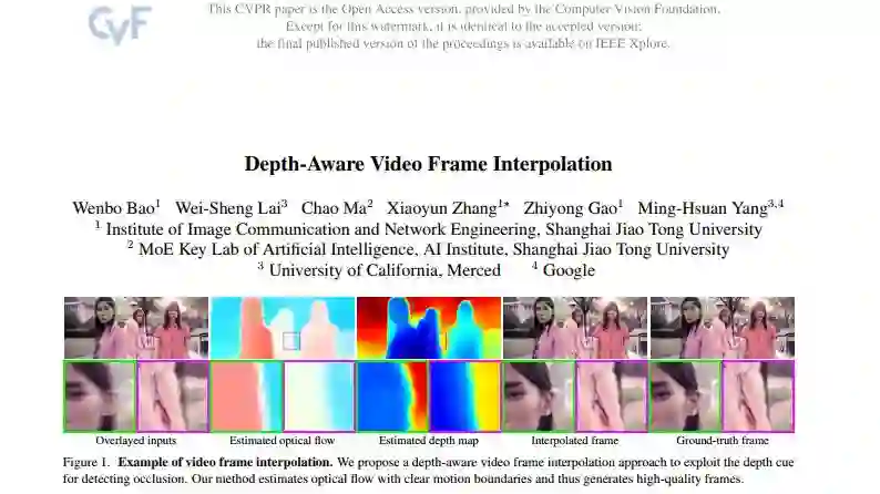 当然,深度感知视频帧内插(Depth-Aware Video Frame Interpolation)也不是最近才出现的技术。早在2019年,此项技术的相关论文就被收录到CVPR 2019,相关算法也已经开源在了Github上。