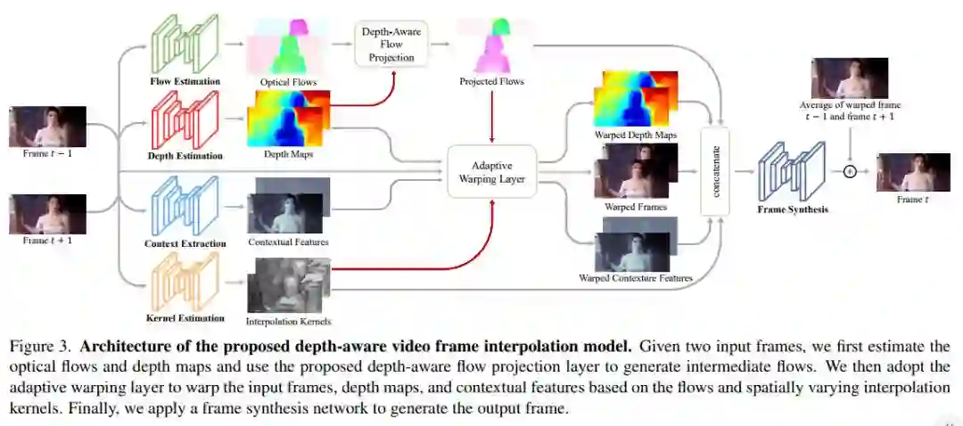 一个深度感知光流投影层来合成中间流,中间流对较远的对象进行采样。此外,学习分层功能以从相邻像素收集上下文信息。