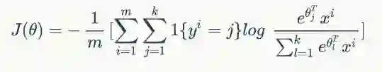 对于多分类的逻辑回归算法,通常我们使用Softmax作为输出层映射,其对应的损失函数也叫交叉熵,只不过写法有点区别,具体如下: