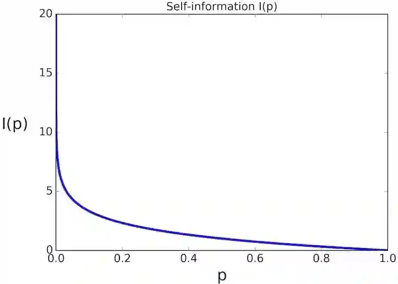 其中 表示随机变量的第i个事件发生的概率,自信息单位是bit,表征描述该信息需要多少位。可以看出,自信息的计算和随机变量本身数值没有关系,只和其概率有关,同时可以很容易发现上述定义满足自信息的3个条件。