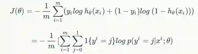 由于交叉熵在逻辑回归中应用广泛,这里给出其定义式,使读者知道交叉熵的具体应用。逻辑回归算法的损失函数就是交叉熵,也叫做负对数似然,其定义为: