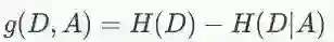 其中D表示数据集,A表示特征,信息增益表示得到A的信息而使得类X的不确定度下降的程度,在ID3中,需要选择一个A使得信息增益最大,这样可以使得分类系统进行快速决策。