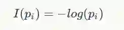 从通俗角度理解了自信息的含义和作用,但是如何度量它呢?我们现在要寻找一个函数,它要满足的条件是:事件发生的概率越大,则自信息越小;自信息不能是负值,最小是0;自信息应该满足可加性,并且两个独立事件的自信息应该等于两个事件单独的自信息。下面给出自信息的具体公式: