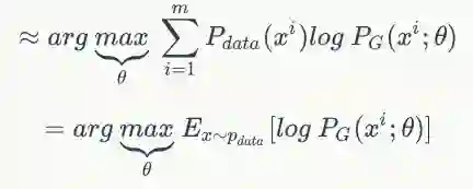 下面讨论一个比较现实且非常重要的问题:既然相对熵和交叉熵表示的含义一样,为啥需要两个?在机器学习中何时使用相对熵,何时使用交叉熵?要彻底说清这个问题,难度很大,这里我仅仅从我知道的方面讲讲。首先需要明确:在最优化问题中,最小化相对熵等价于最小化交叉熵;相对熵和交叉熵的定义其实都可以从最大似然估计得到,下面进行详细推导:以某个生成模型算法为例,假设是生成对抗网络GAN,其实只要是生成模型,都满足以下推导。若给定一个样本数据的真实分布和生成的数据分布