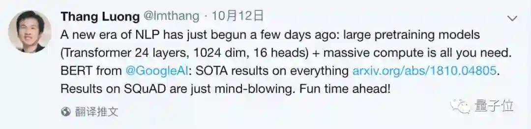 一个NLP的新时代开启了,Google团队的Thang Luong说。