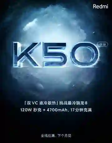 据 @数码闲聊站 今日爆料,Redmi K50 电竞版、Redmi K50 和 Redmi K50 Pro 三款旗舰都是侧边实体指纹方案,并且 Redmi K50 电竞版与 Redmi K40 的指纹位置一致。后期会有一款机型使用屏下指纹方案,发布时间较晚。据悉,Redmi K50 电竞版还将搭载全新一代高通骁龙 8 旗舰处理器,配备双 VC 液冷散热系统,保留肩键设计。Redmi K50 Pro 有 4700mAh 大电池,120W 神仙秒充,17 分钟充满,即将在二月发布。