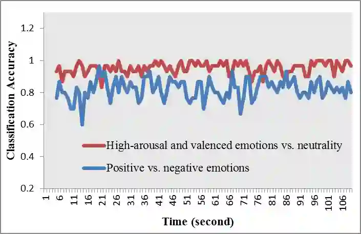 (2)采用电影片段作为诱发情绪的材料,提出了以短时离散傅里叶变换为基础的频域特征提取和归一化方法、用稀疏线性判别分析方法进行特征选取、结合SVM分类器进行识别的实时系统,在复杂真实环境中的离散情绪实时识别研究中取得重要进展。