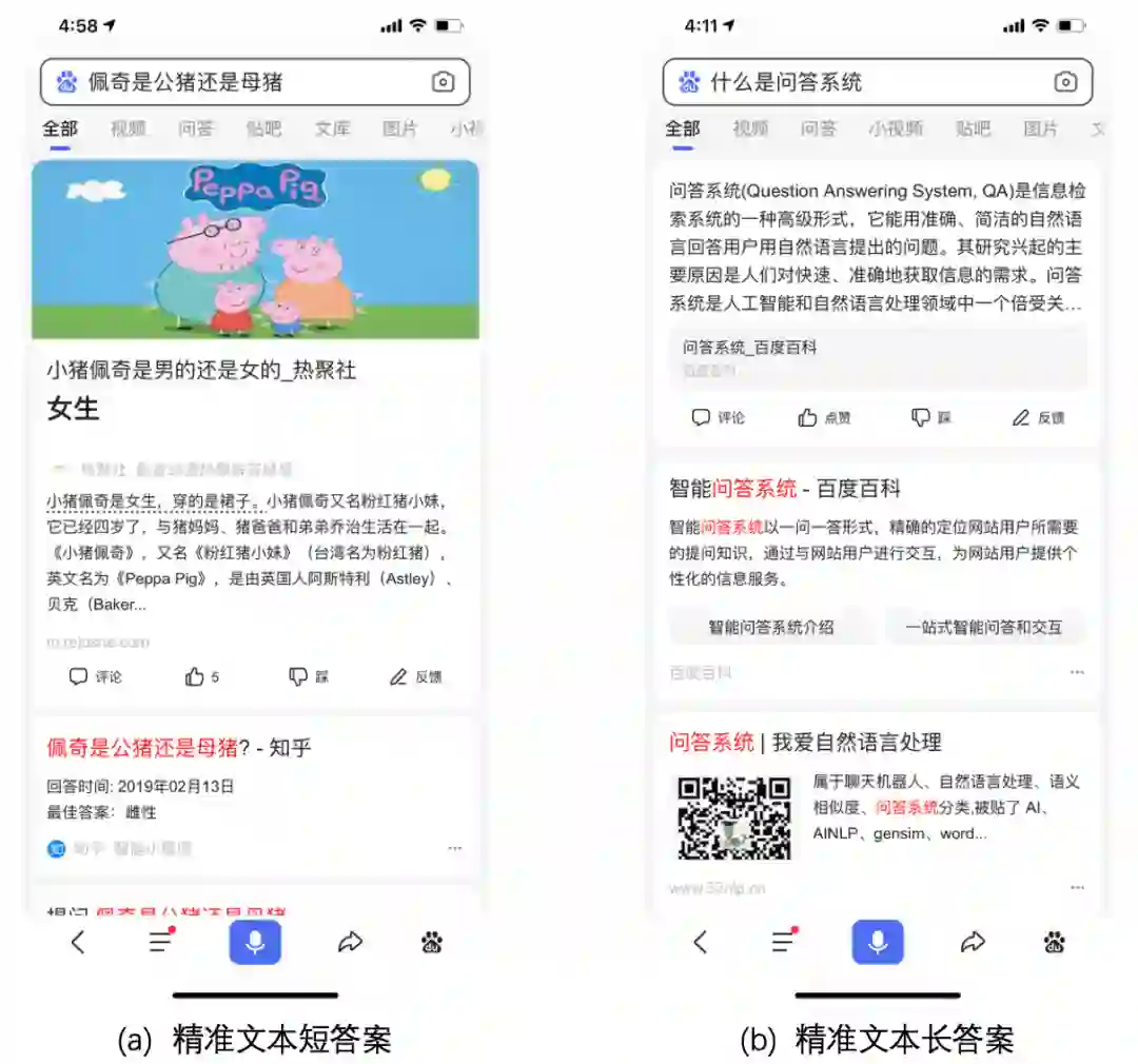 开放域问答(Open-domain QA)是自然语言处理领域的重要研究课题。它的任务是,基于用户用自然语言提出的问题,从海量候选文本中快速、精准地找出答案。开放领域问答在智能搜索、智能助手、智能客服等多个场景下,都发挥着重要作用。特别是近些年,随着各种智能手机、智能音箱的普及,智能搜索快速进化,通过开放域问答系统直接给出唯一的精准答案(如图 1 所示),可以帮助用户在这些小屏和无屏设备上更快速、准确的获取有用信息。