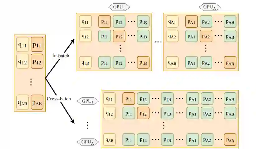 图 3 批次内负采样(上)和跨批次负采样(下)的对比