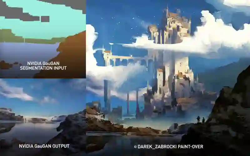 今年3月,在加州圣何塞举行的GPU技术大会(GTC)上,Nvidia揭开了GauGAN的面纱,这是一种生成对抗性AI系统,可以让用户创建实际并不存在的逼真风景图像。GauGAN测试版在Playground平台上发布后的第一个月,就已经生成了50万张图片,包括电影、视频游戏等概念艺术领域均有应用。