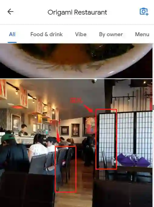 2、明州案晚宴视频中出现的椅子,和Origami餐厅的椅子和桌子,非常像。