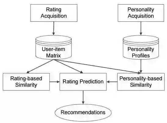 此类算法常常分为两步,首先使用心理学中的调查问卷工具来测量用户的性格特征,然后把用户的性格特征融合到传统的推荐算法中。代表性的工作来自洛桑联邦理工学院的Rong和Pearl,他们在协同过滤的框架中引入了性格特征。
