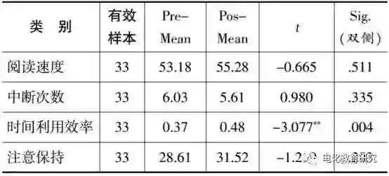 实验组和控制组在实验前后表现出不同的学习投入特征。实验组学习者在阅读速度、阅读中断次数、时间利用效率指标上得到了显著的改善。控制组在时间利用效率上也得到了一定的提高。值得注意的是,学习者在平均注意力保持时间上并没有显著的提升。这种现象可能是成人学习者在注意力保持时间上已经达到了一个相对稳定的水平。
