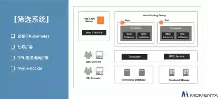 解决这个问题的方法就是筛选系统,通过筛选系统,我们将大的数据集拆分为小的单元,每个单元中包含小的任务,而每个单元对应一个 GPU,使用 GPU进行智能筛选。最终只有约10%的图片是需要进行标注的,大大减少了数据标注的成本。
