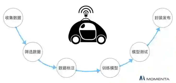 其中,大数据平台能够完美处理自动驾驶领域的数据流,具体而言,便是处理收集数据、筛选数据、数据标注、训练模型、模型测试、封装发布的整个过程。