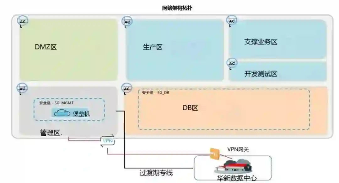 其中,网络环境配置是根据网络架构拓扑来实施配置网络,创建相应的 VPC 和子网, 通过专线网关连接到 IDC 网络环境,通过路由配置打通云上和云下的网络。