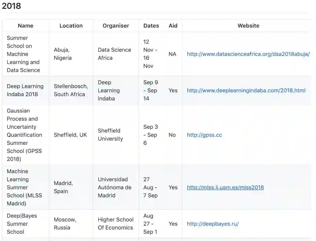 除了 2019 年即将举办的暑期学校,作者还列出了已经结束的 18 个 2018 年暑期学校的信息。据机器之心了解,这些课程在结束后会陆续放出相关视频与 PPT 资源,例如我们每年都会为读者推荐多伦多的深度学习与强化学习暑期学校的学习资源: