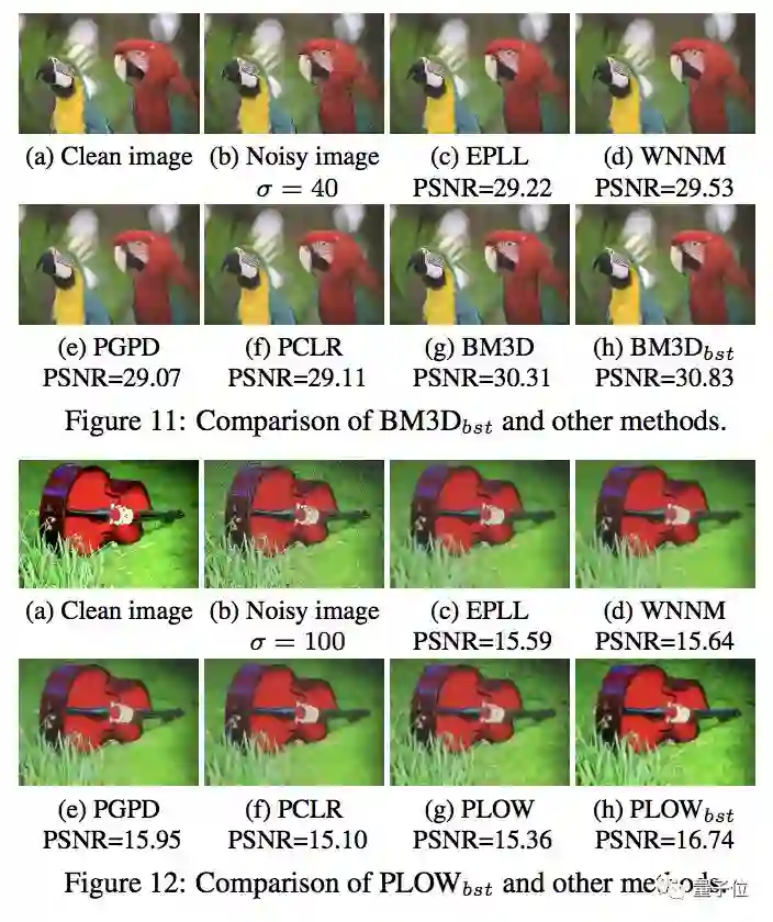 在目前主流的、基于补丁的图像去噪算法如BM3D,LPCA和PLOW上,这种改进术都取得了肉眼可见的提升。