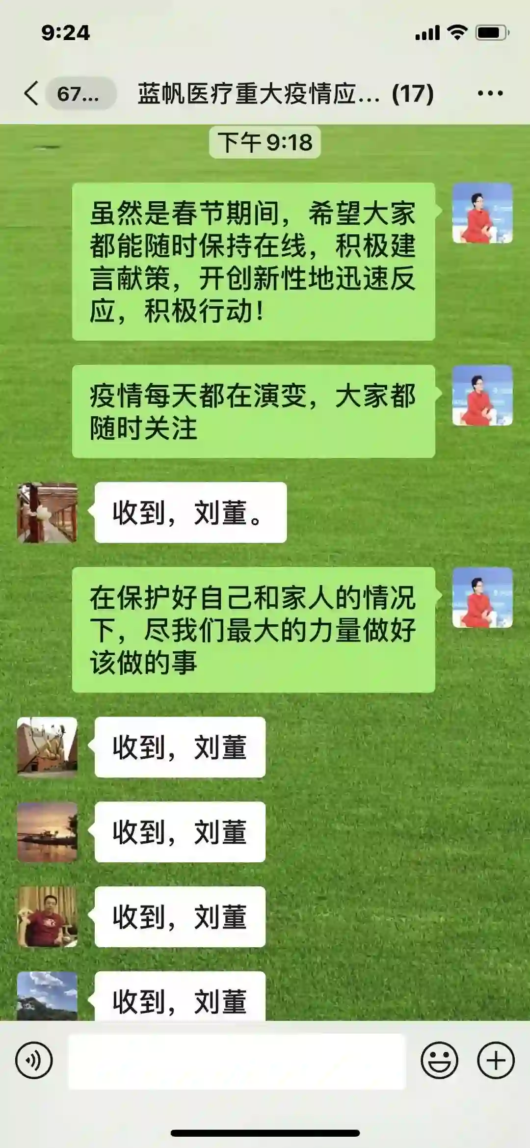 蓝帆医疗重大疫情应急响应指挥工作小组微信截图