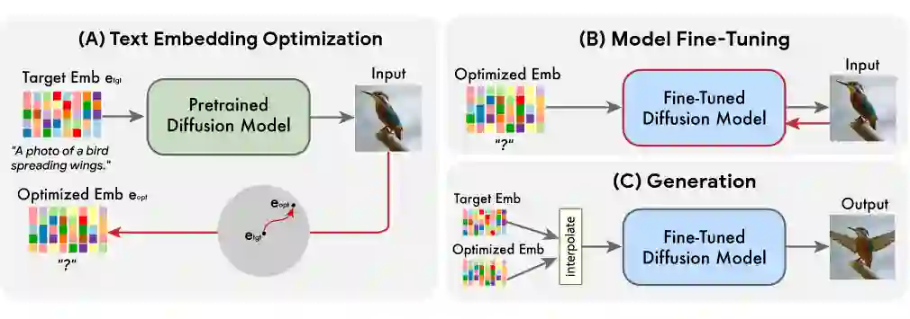 最新的 Imagic 模型 [7] ,号称可以实现通过文本对图像进行 PS 级别的修改内容生成。目前没有公布模型和代码。从原理图来看,似乎是通过在文本-图像扩散模型的基础上,通过对文本嵌入的改变和优化来实现生成内容的改变。如果把扩散模型替换成简单的 encoder 和 decoder,有点类似于在 VAE 模型上做不同人脸的生成。只不过是扩散模型的生成能力和特征空间要远超过 VAE。