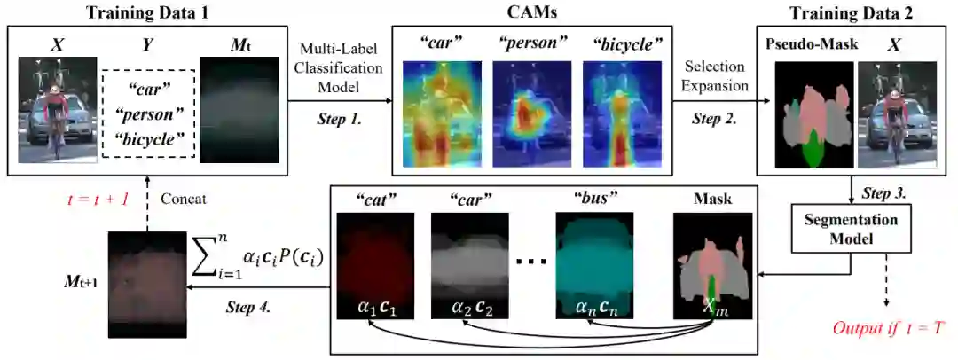 产生的CAM又可以用来产生更高质量的mask,以此形成一个良性循环(其收敛性可以由EM算法保证)。