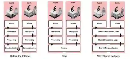 分布式账本可以完全消除这种需求,无论是由交易双方进行还是由第三方完成。这是由分布式账本的本质决定的,账本上所有节点(参与者)的状态必须一致。