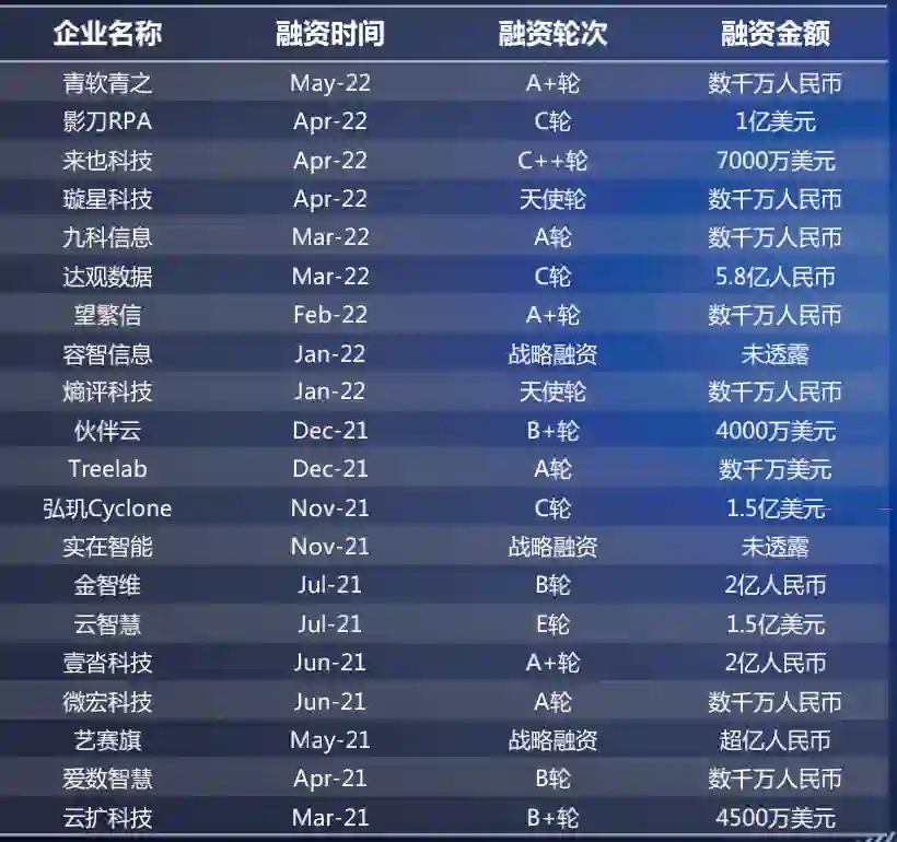 36氪敏锐地捕捉到了超自动化行业相关趋势,已连续发布《RPA x 流程挖掘:2022第一个企服风口》、《被SAP、IBM、微软盯上的流程挖掘,能长出中国独角兽吗?》、《对标Celonis,企业级执行管理平台「璇星科技」获红杉中国种子基金数千万元天使轮融资》、《一年3轮累计亿元融资,望繁信科技再下一城》等稿件,为读者系统性呈现行业现状。