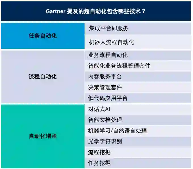 而超自动化这一概念之所以会被提出并被国内外纷纷追捧,背后是全球的数字化转型进行进入了新的阶段。单一的RPA只能实现企业局部的自动化改造,对于企业新时代的整体数字化需求无法满足;单一的流程挖掘只能发现问题,最终的解决如果还是依靠人,那也不算数字化。