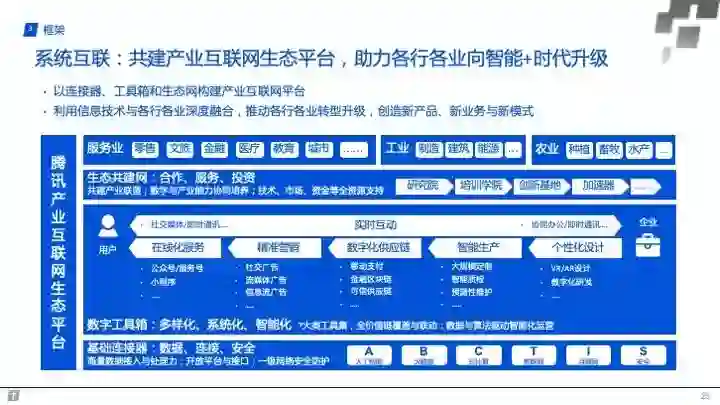 腾讯发布了《产业互联网:构建智能+时代数字生态新图景》重磅报告。不同于阿里“智能+”商业的定位,腾讯侧重从“智能+”产业层面落地。