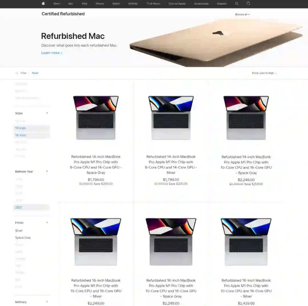 苹果推出 M1 Pro / Max 芯片翻新机型