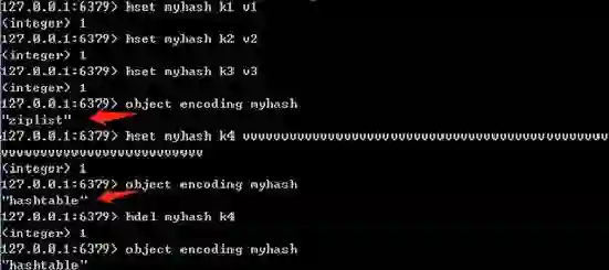 前面说过,Redis每个对象由一个redisObject结构表示,它的ptr指针指向底层实现的数据结构,而数据结构由encoding属性决定。比如我们执行以下命令得到存储“hello”对应的编码: