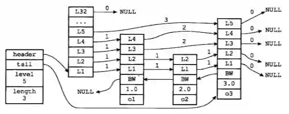 skiplist的查找时间复杂度是LogN,可以和平衡二叉树相当,但实现起来又比它简单。跳跃表(skiplist)是一种有序数据结构,它通过在某个节点中维持多个指向其他节点的指针,从而达到快速访问节点的目的。