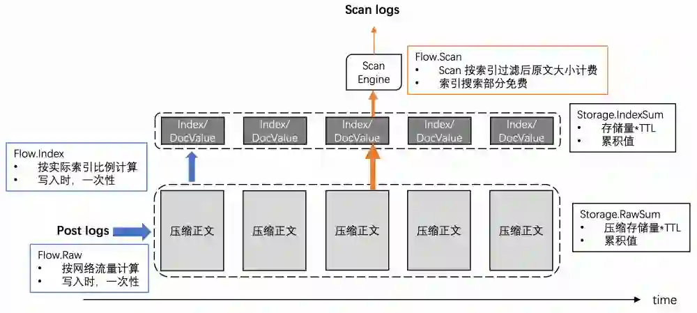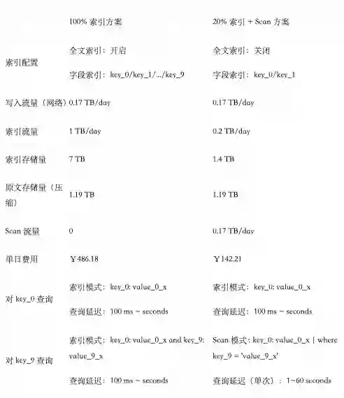 2. 其它的低频日志字段或不明确的字段,不配置索引,查询需求通过 Scan 在运行时完成计算。
