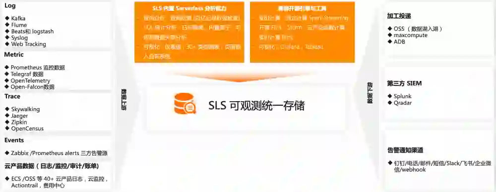 SLS 是日志中枢,对接了丰富的数据源(写入支持友好:端多、吞吐大、schema 灵活)和下游系统(数据开放)。Scan 专注在计算上,补齐未索引字段不能搜索的短板,不能引入类似 Loki 的写入限制。