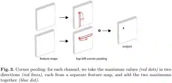 首先预测出两组heatmaps,一组为top-left角点,另一组为bottom-right角点。每组heatmaps有C个通道,表示C个类别,尺寸为HxW。每个通道是一个binary mask,表示一个类的角点位置。