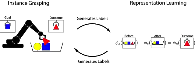 在这篇文章中,我们展示了机器人抓取技能如何生成用于学习对象中心表征的数据。然后,我们可以利用表征学习来 “引导” 机器人学习实例抓取等更复杂的技能,同时保留自主抓取系统的自我监督学习属性。