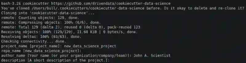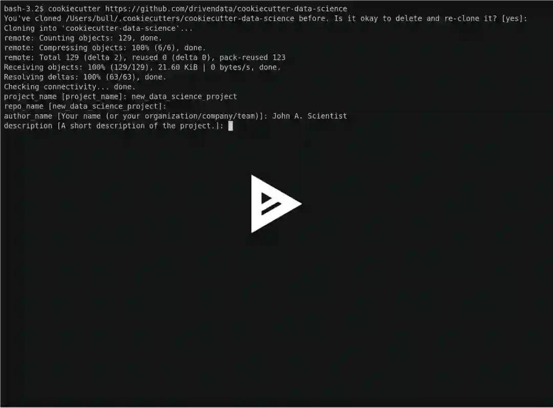 启动新项目只需在命令行中运行如下命令。无需先创建目录,cookiecutter将为您完成。