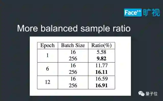 首先,根据我们的统计,在训练过程之中,正负样本比例比小Batch-Size更优,这也意味着梯度的计算能更好地拟合数据分布。下图展示了两张正样本比例相差较大的结果,由于大Batch-Size能够同时计算这两种极端情况的梯度,使得模型参数更新更加平稳。