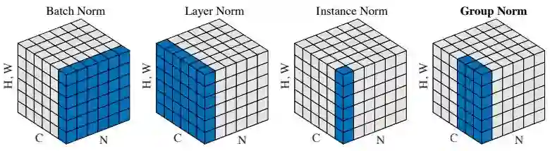 x = batch_norm(x, is_training=is_training, scope='batch_norm') x = instance_norm(x, scope='instance_norm') x = layer_norm(x, scope='layer_norm') x = group_norm(x, groups=32, scope='group_norm') x = pixel_norm(x) x = batch_instance_norm(x, scope='batch_instance_norm') x = condition_batch_norm(x, z, is_training=is_training, scope='condition_batch_norm'): x = adaptive_instance_norm(x, gamma, beta):