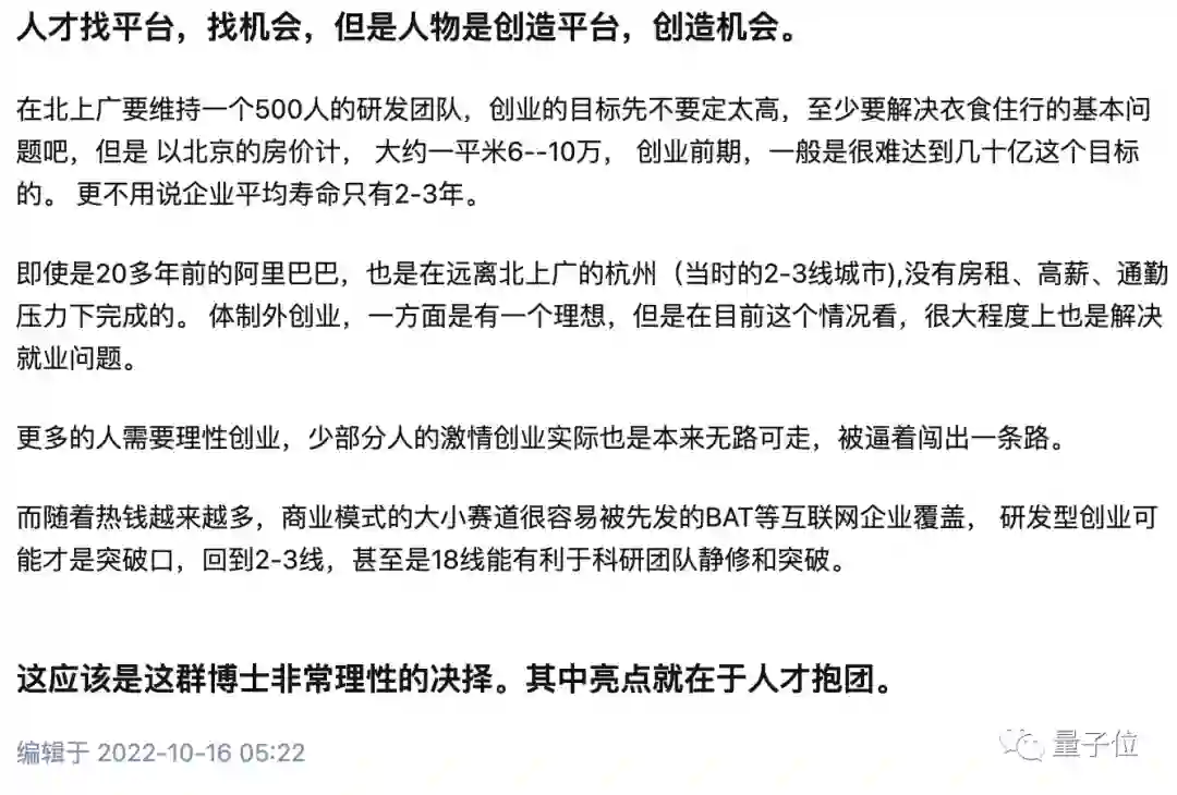 同时有人指出,人才抱团也是该个例能成功的一个关键,因为相比人才找平台,他们自己给自己创造了平台和机会。
