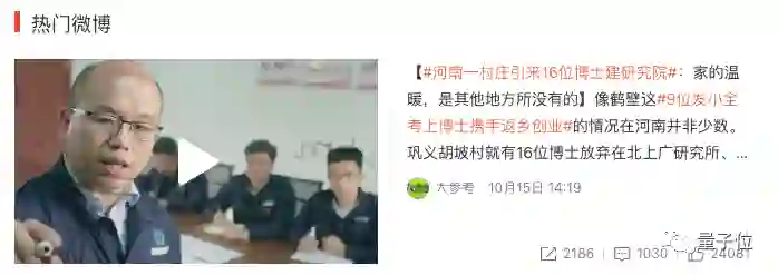 据河南媒体「大参考」消息,这16位博士放弃北上广研究所、高校工作,甚至打掉铁饭碗,在巩义胡坡村扎根建研究院。