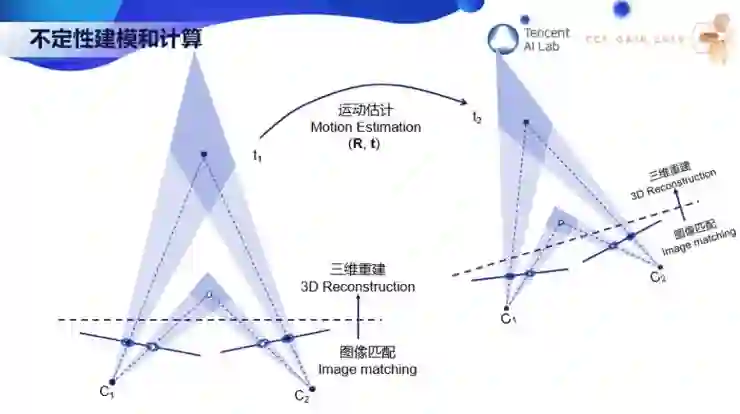 现在我想举一个简单的例子,不定性的建模和计算,希望通过下面这一页 PPT 你们就能明白什么是三维计算机视觉。