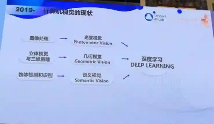 现在让我们回顾一下计算机视觉研究的演变,从最初的图像处理、立体视觉与三维重建、物体检测和识别,到光度视觉、几何视觉和语义视觉,到现在的深度学习打遍天下。这是让我担忧的。深度学习有很多局限性。