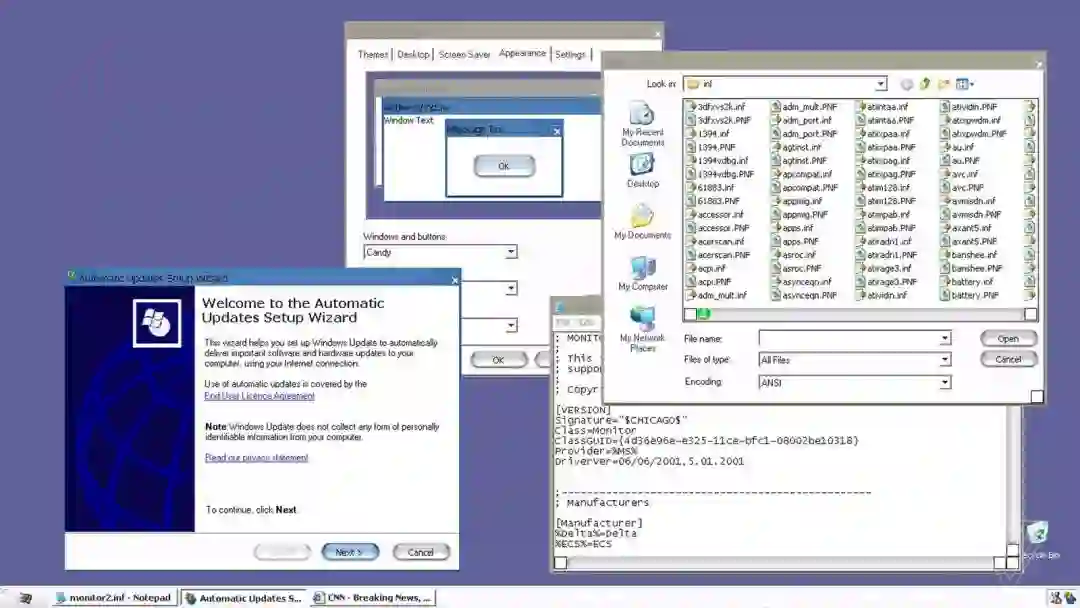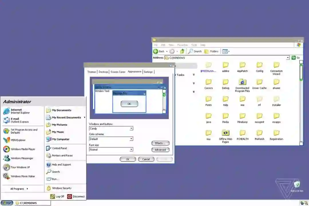 其中一个代号为“Candy”的主题显示了类似 Apple Aqua 界面的设计,Aqua 界面于 2000 年在 Macworld Conference&Expo 上首次推出。Aqua 是苹果的标志性设计,尽管主题不完整,但 Windows XP 的“开始”按钮以及各种按钮和 UI 元素显然都与苹果的 Aqua 类似。