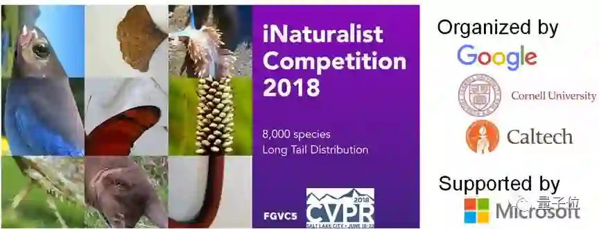 在大会开幕式的特别环节中,四个具有代表性的竞赛组委会被邀请上台进行宣讲。其中精细粒度分类workshop FGVC5的旗舰挑战赛iNaturalist Challenge 2018 (iNat-2018)是该环节的重头戏之一,该竞赛由谷歌公司、加州理工和康奈尔大学共同组织,并得到微软公司赞助。