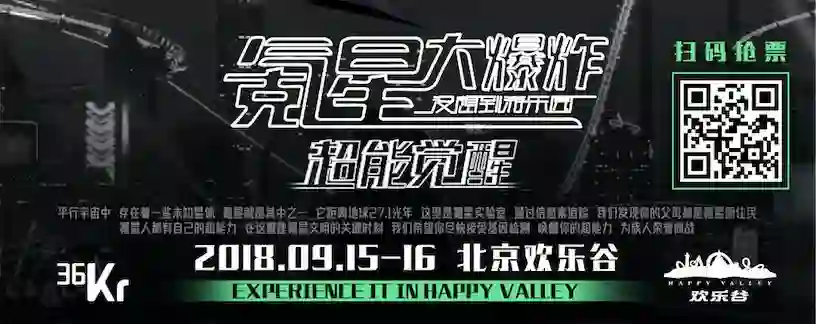 在9.15-16那两天,36氪联合了北京欢乐谷,打造了一部名为「氪星大爆炸:超能觉醒」的科幻大电影,邀请最会玩的你燃爆欢乐谷。(传送门:36氪 x 北京欢乐谷,让你的想象力再次「爆炸」)